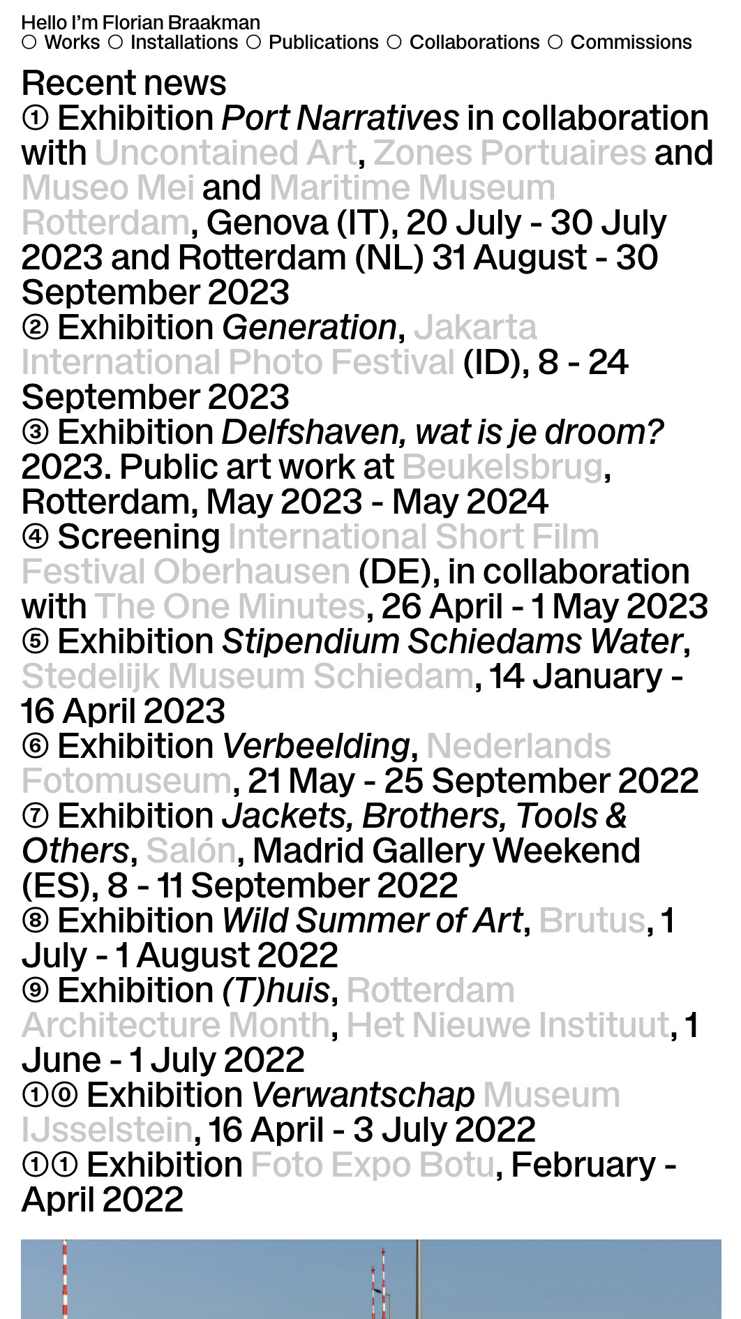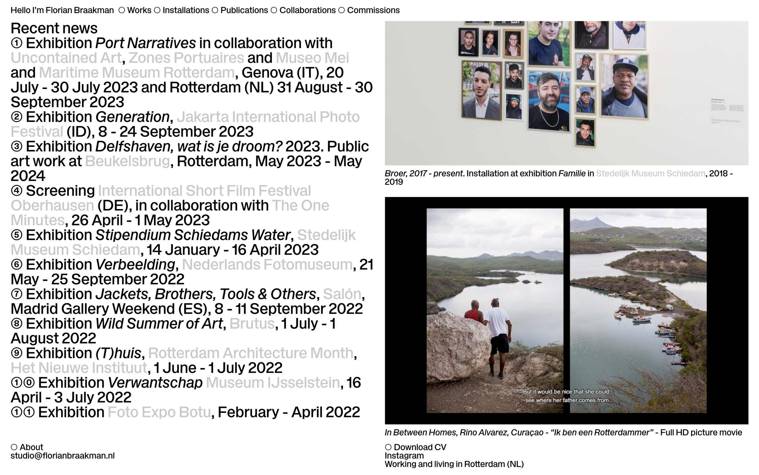 A website for the photographer Florian Braakman, who draws inspiration from the dynamic cityscape of Rotterdam.