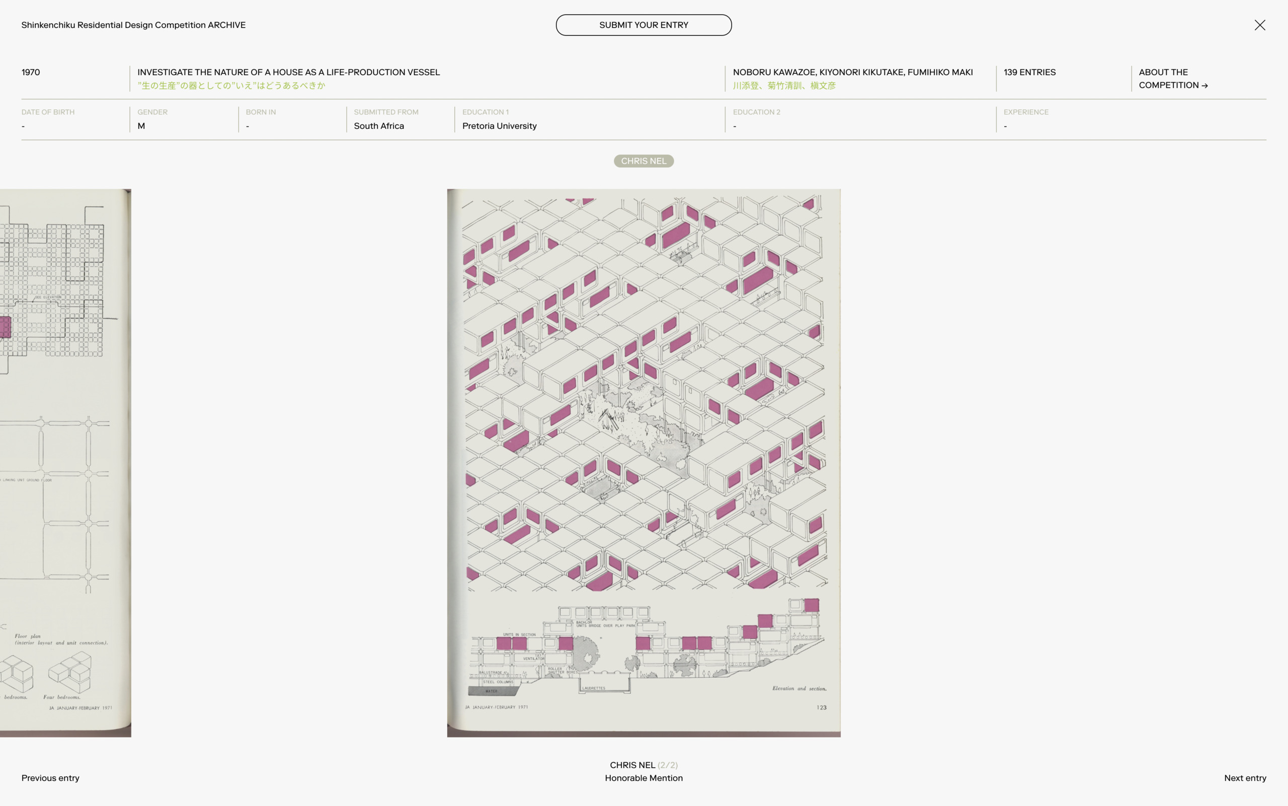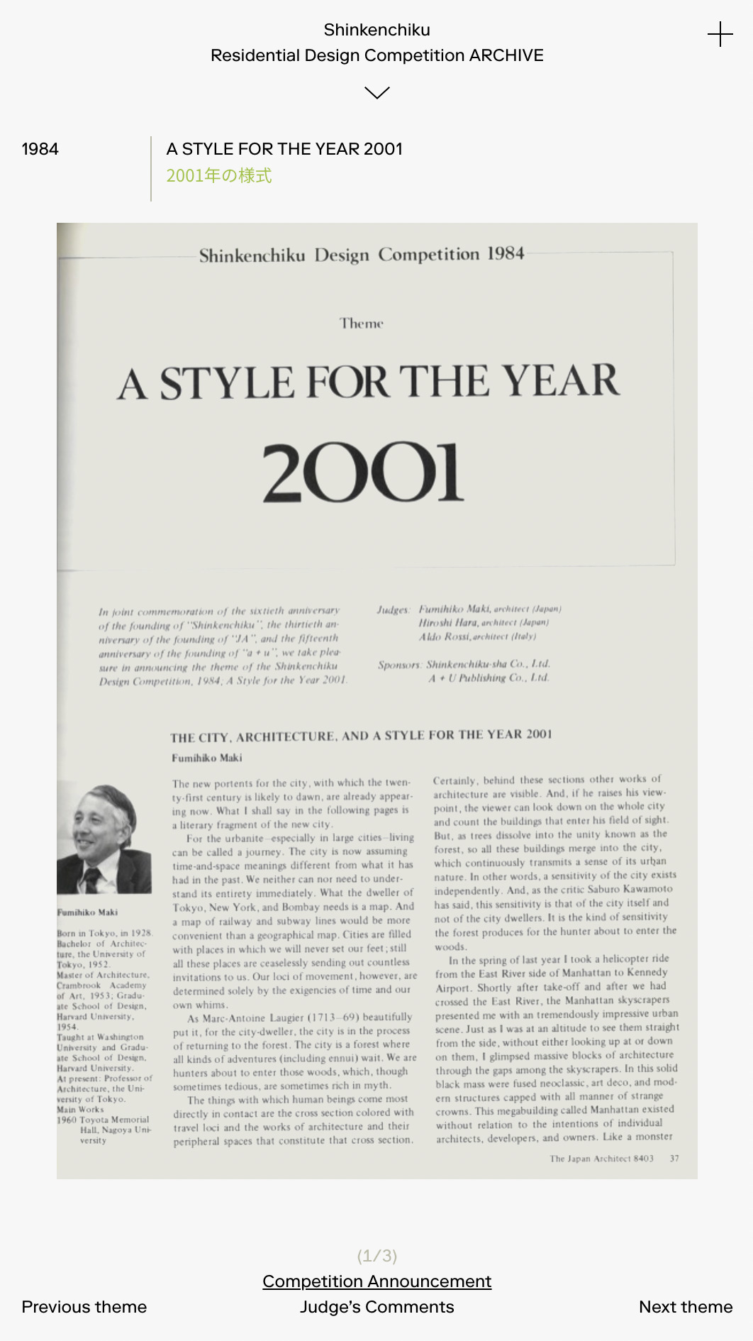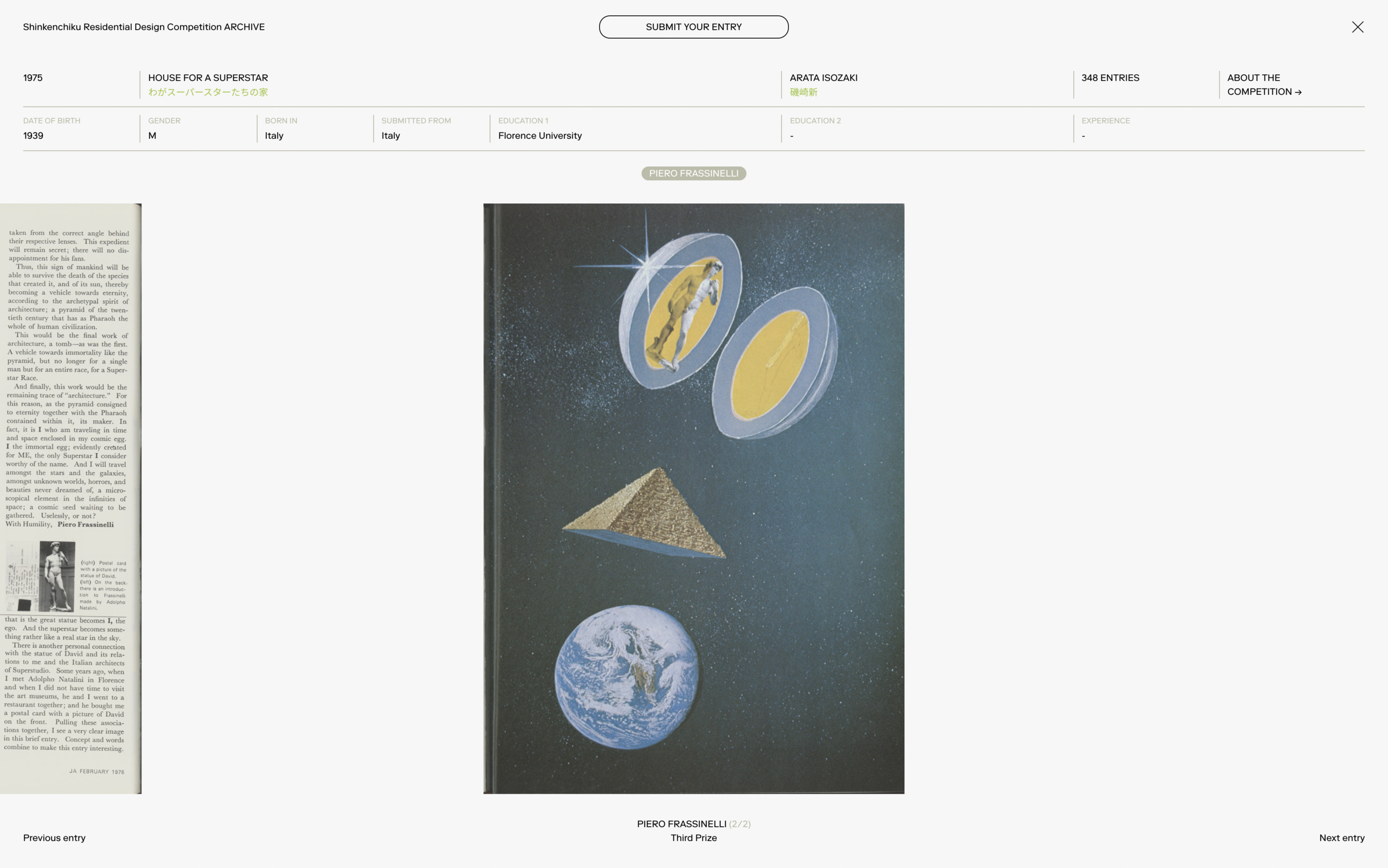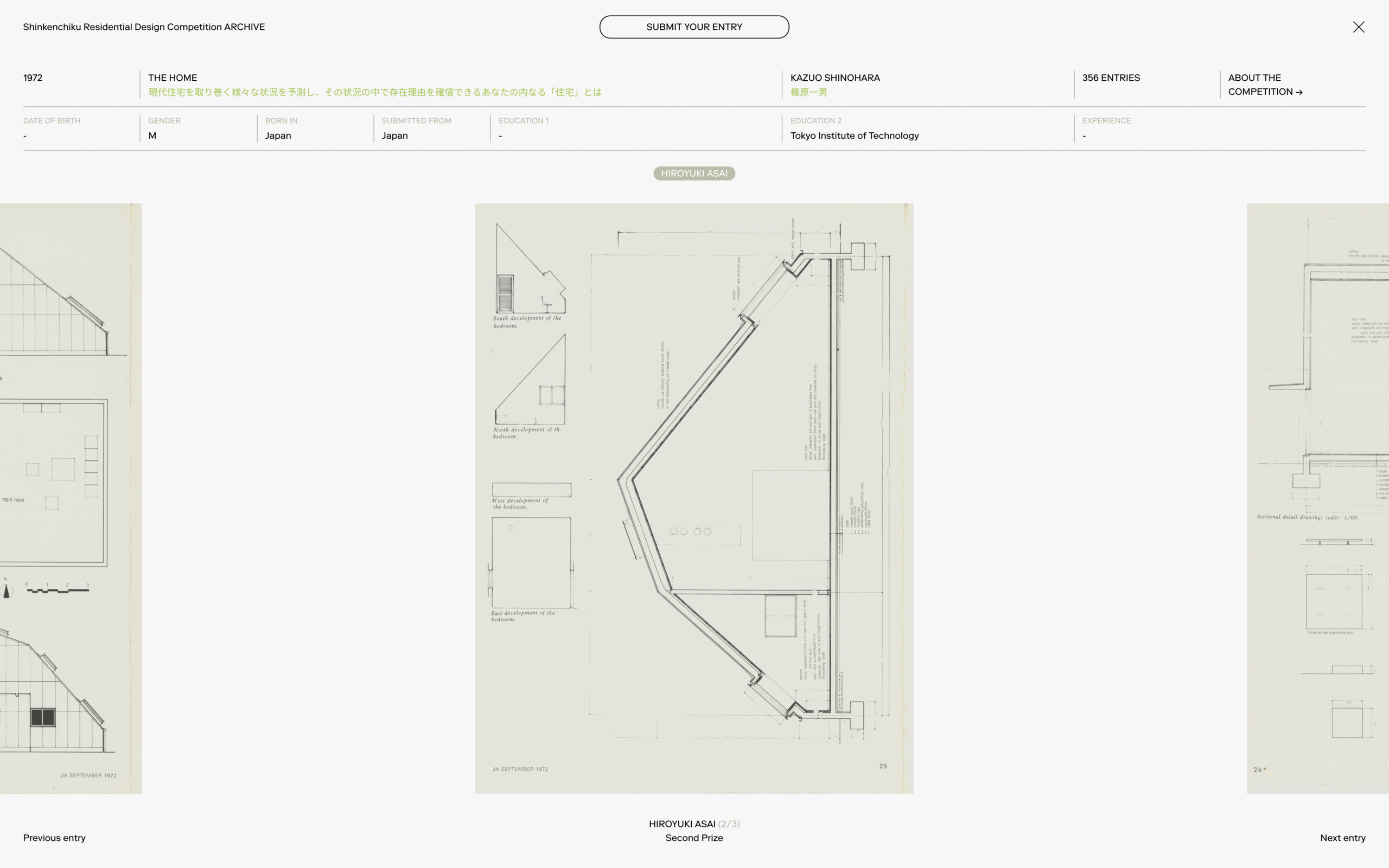 A message-in-a-bottle website for the Call for Lost Entries platform, aiming to complete the archive of The Shinkenchiku Residential Design Competition. The website seeks to collect competition entries that did not win awards (and were not published).
