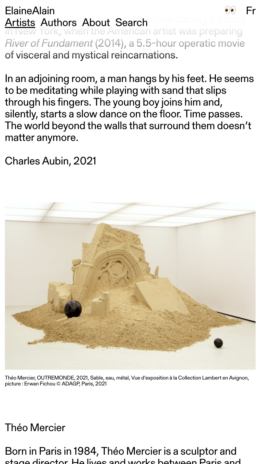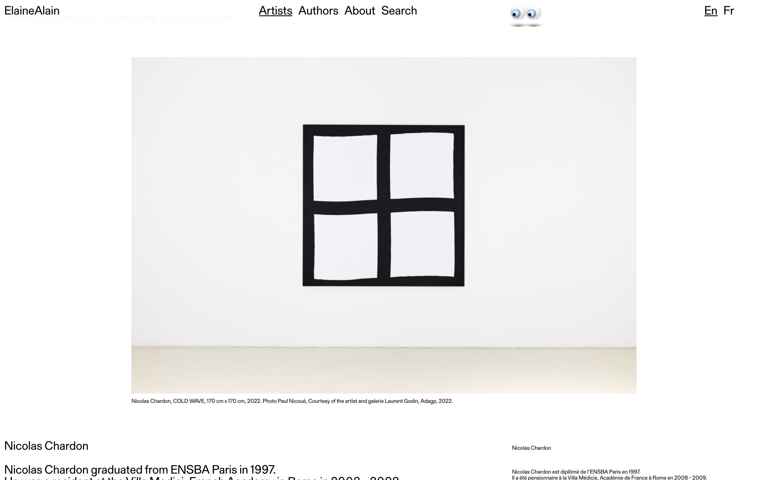 A website-index for ElaineAlain, supporting and promoting the visibility of the French art scene to international audiences. This platform (or the eponymous Instagram account) offers perspectives from art critics, artists, writers, and curators.