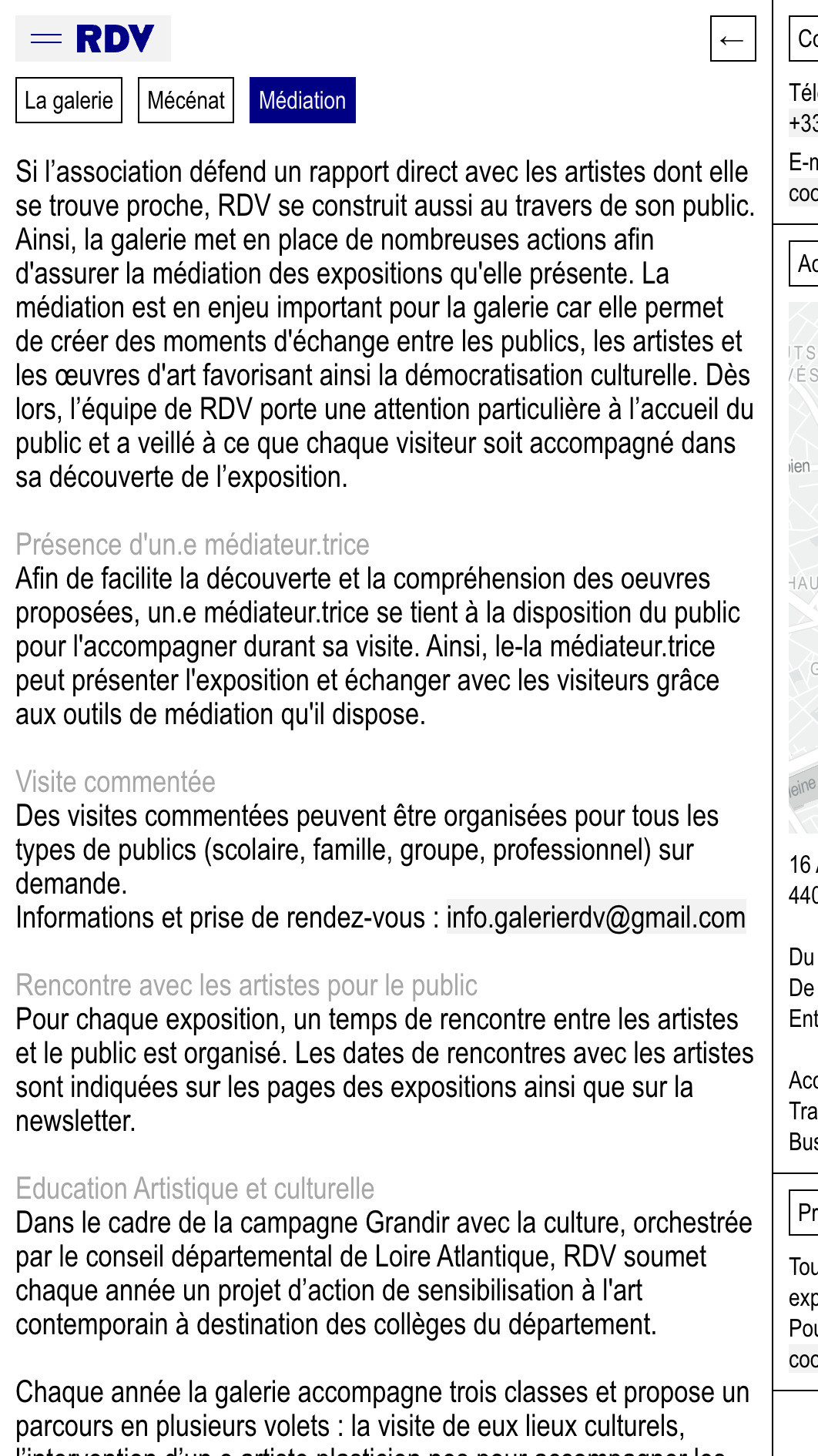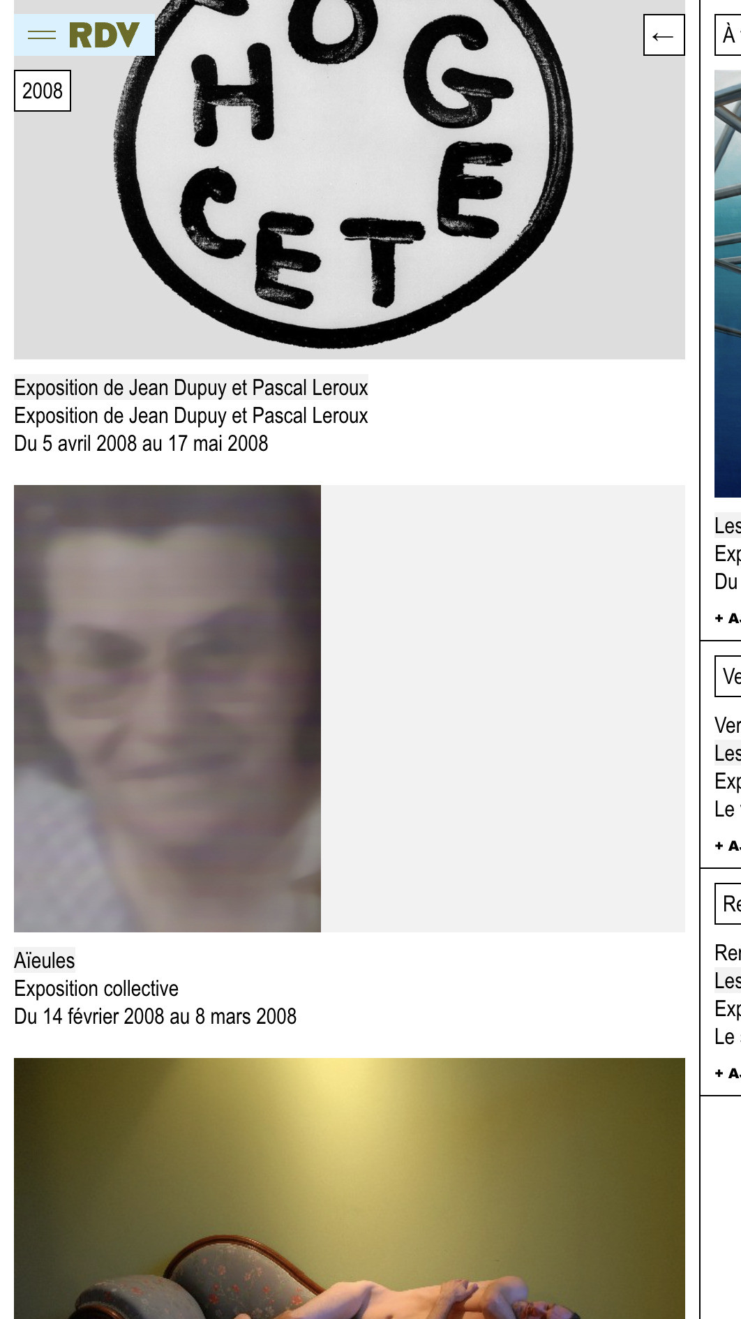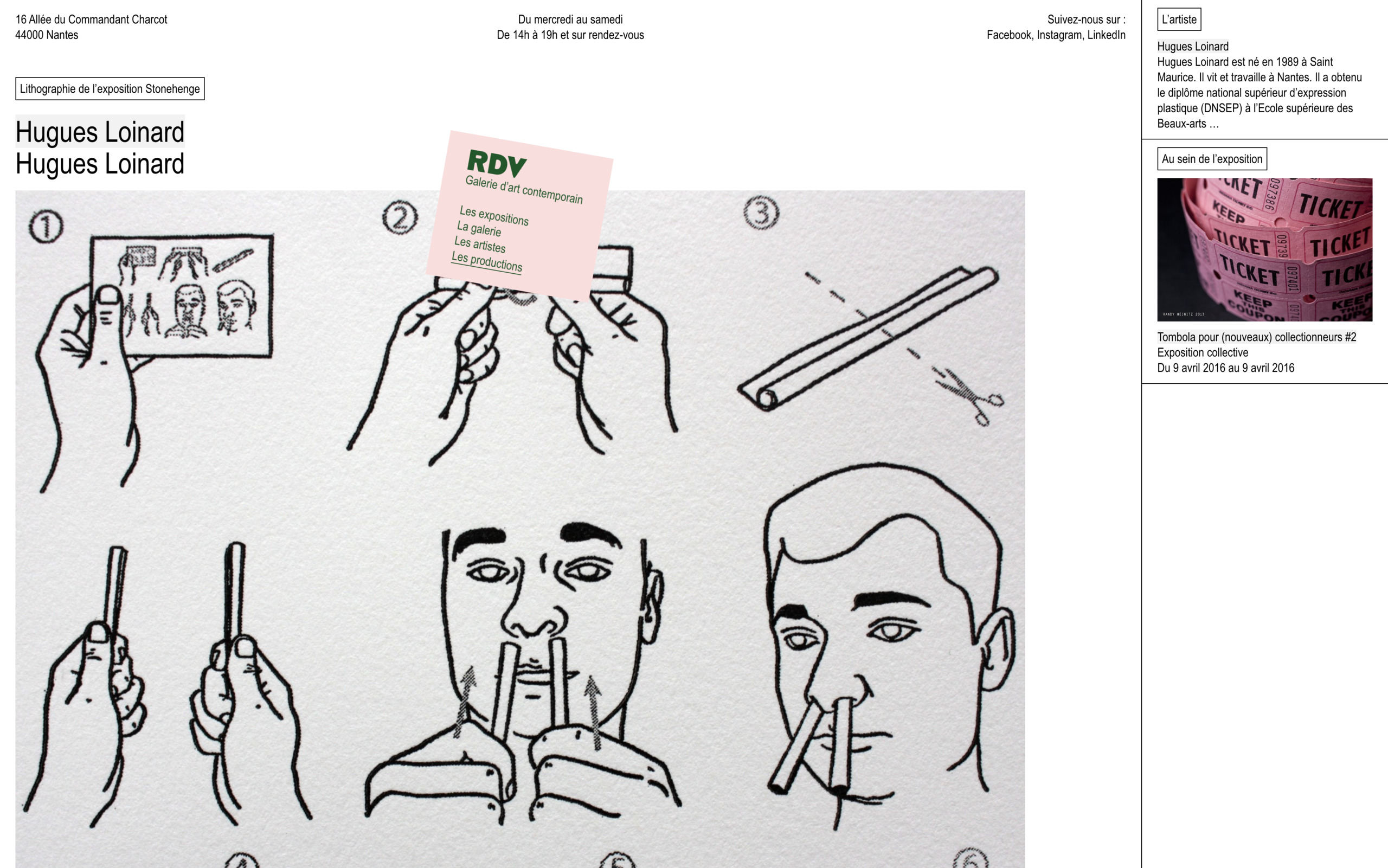 A new identity and website for Galerie RDV, an art space in Nantes promoting contemporary art and community events.