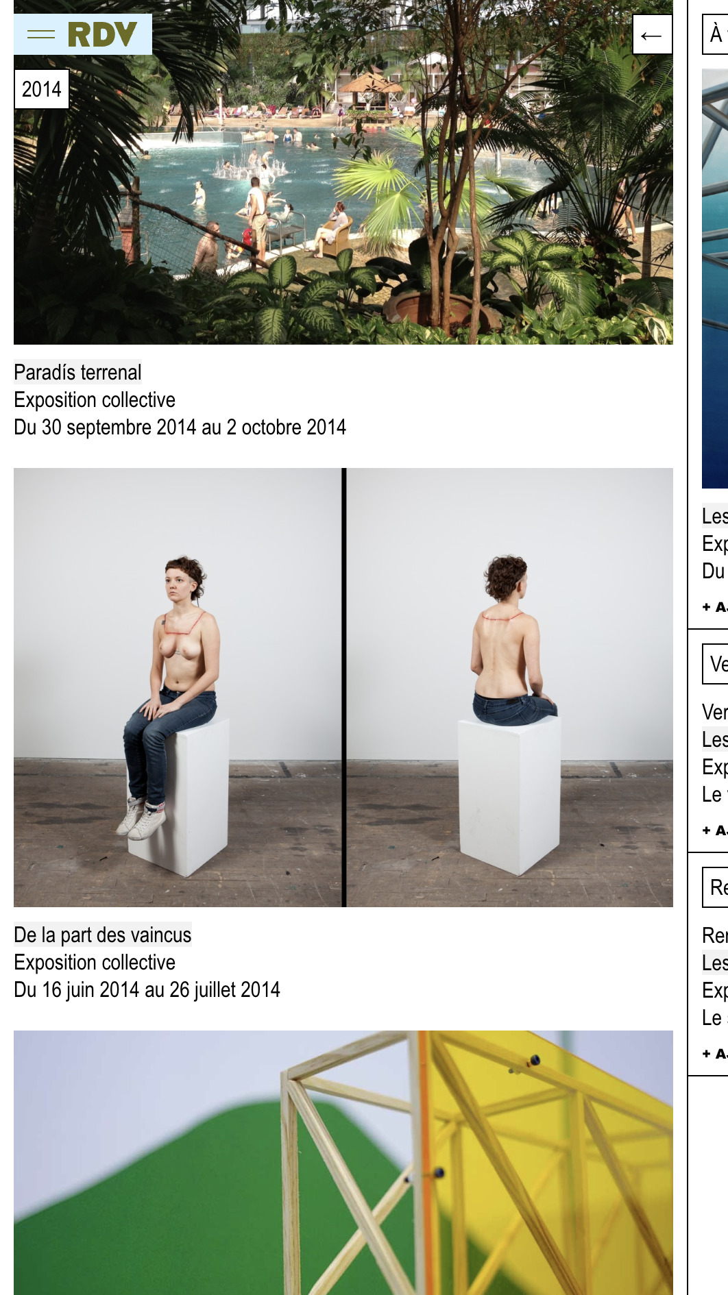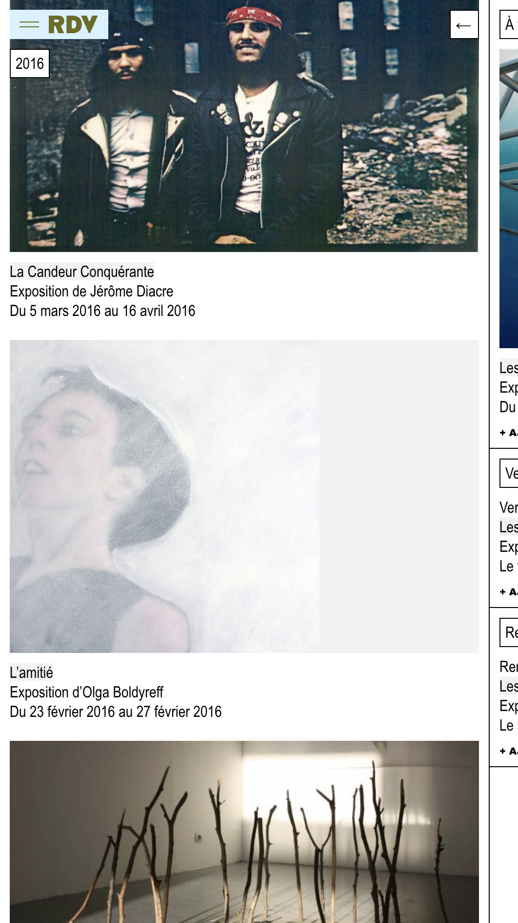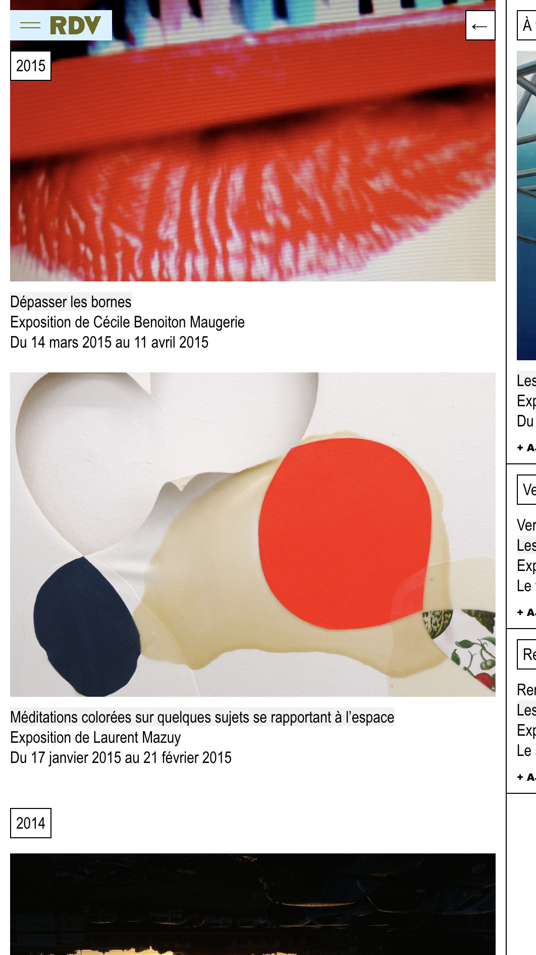 A new identity and website for Galerie RDV, an art space in Nantes promoting contemporary art and community events.