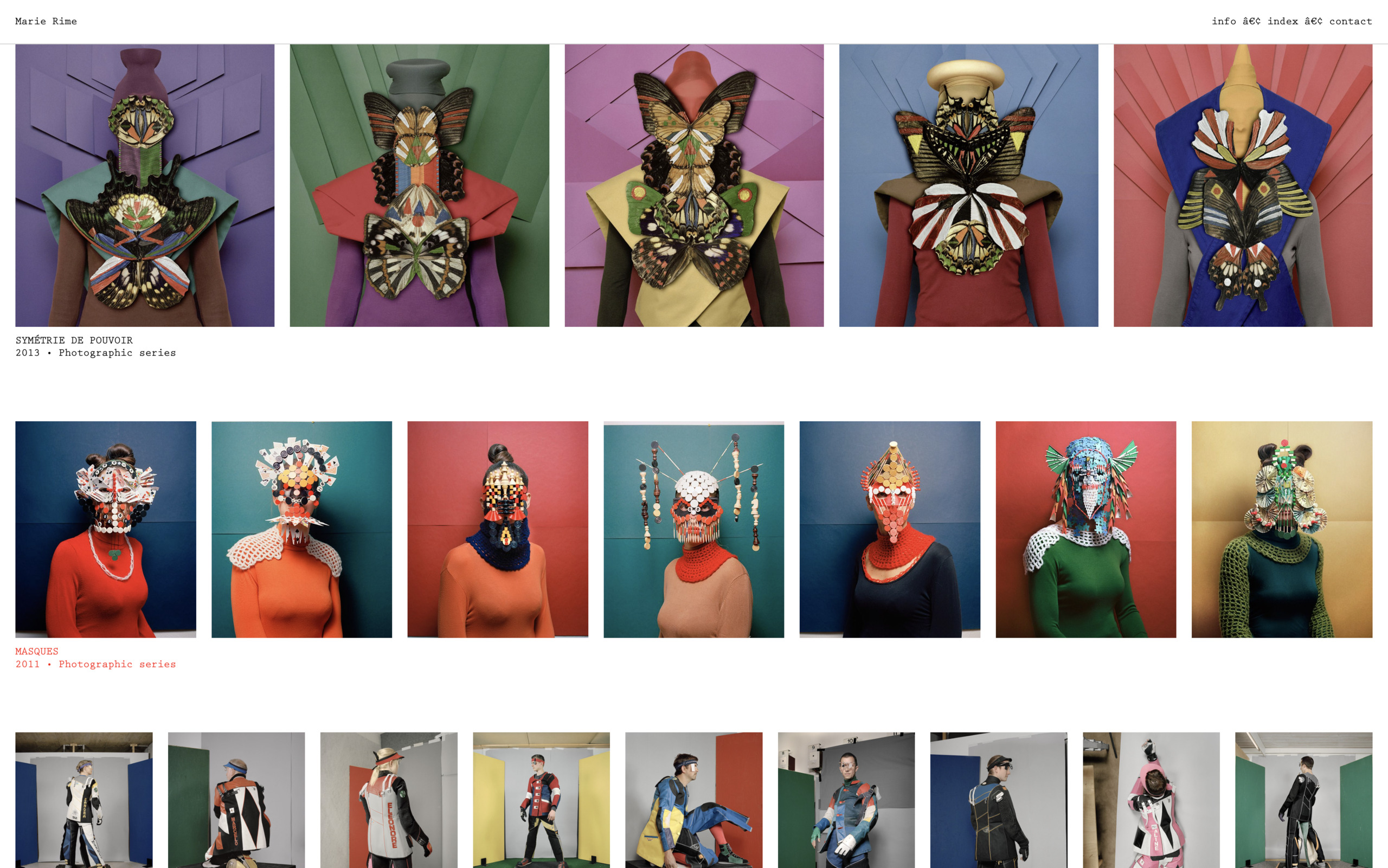 A mixed-media portfolio website for the photographer and costume designer Marie Rime, inspired by the colorful folklore and traditions of her Swiss homeland.