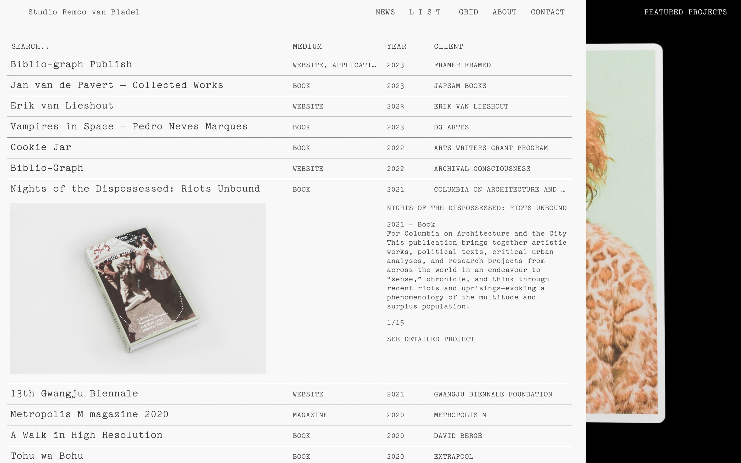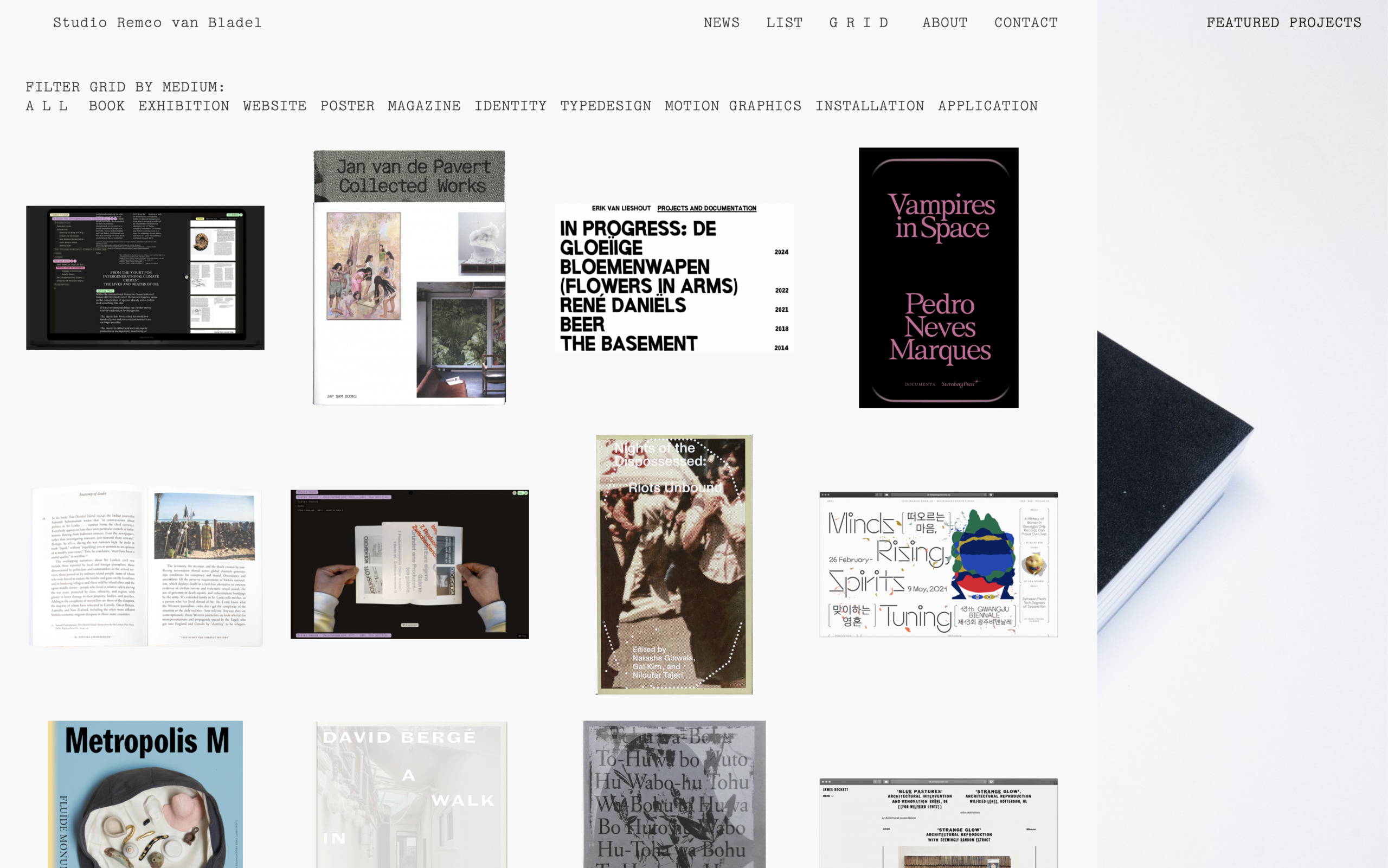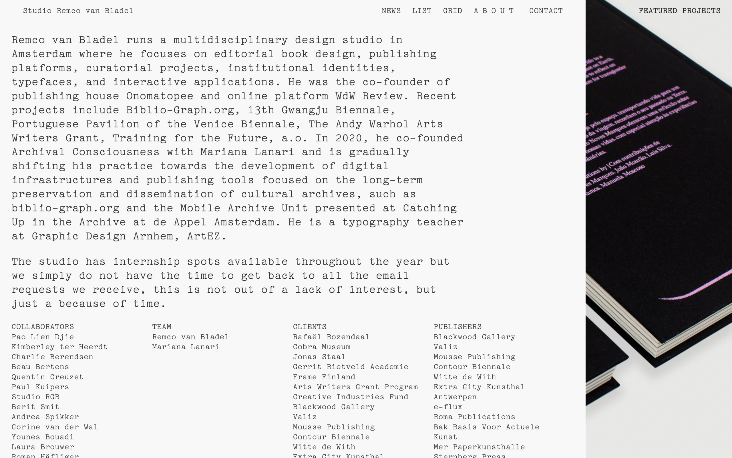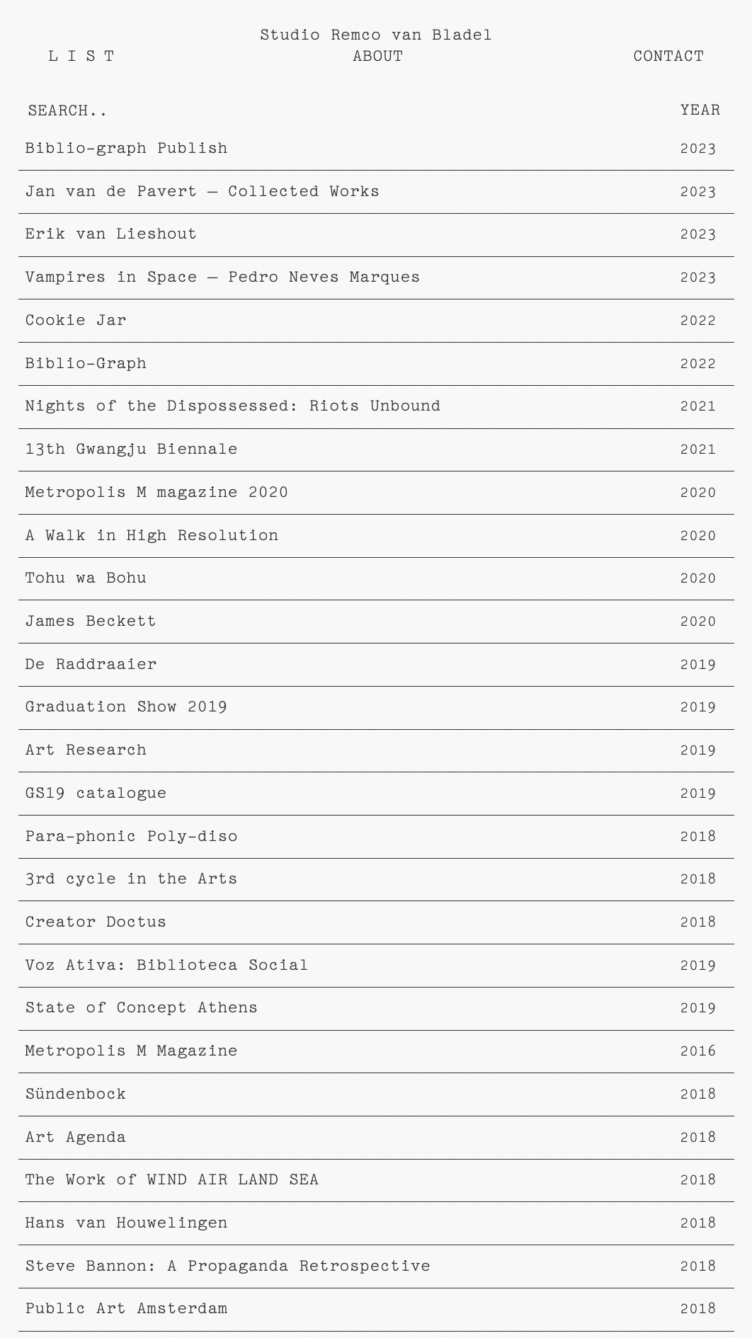 A new website for Remco van Bladel’s design studio, outlining his experimental publishing practice through a portfolio of multidisciplinary design projects.