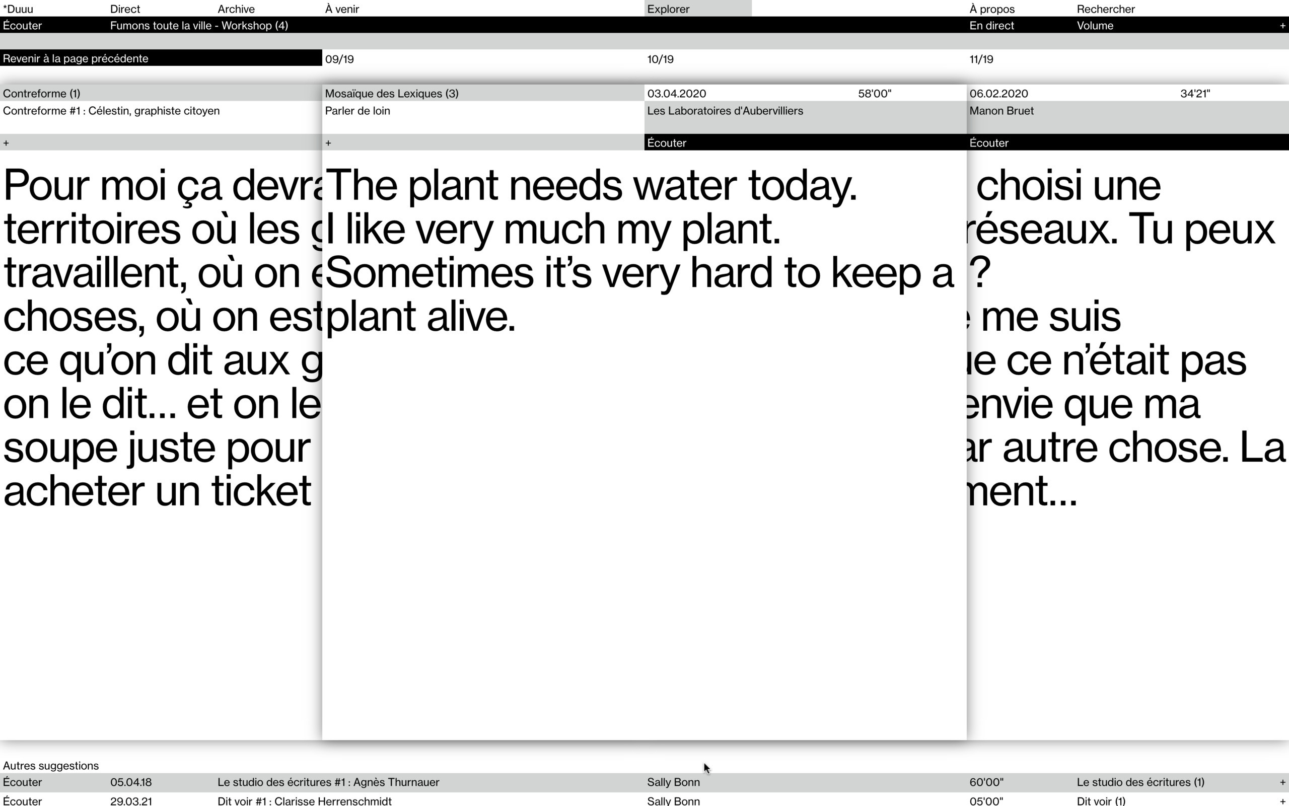 An online radio website for *Duuu, a radio dedicated to contemporary creation. The tabular-structured website functions as an archive with three different navigation modes.