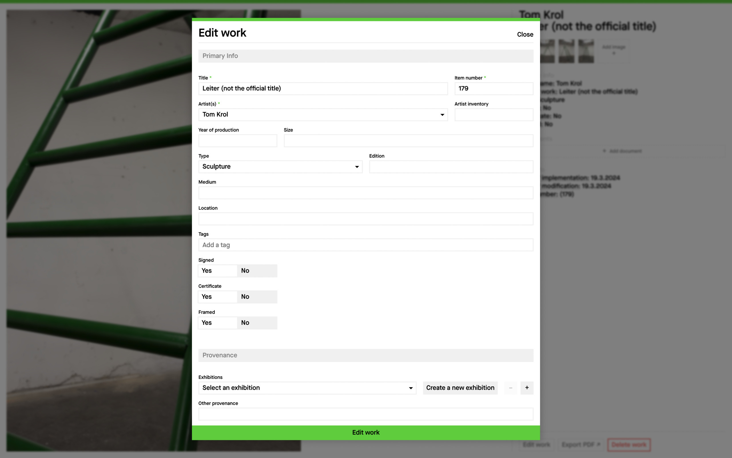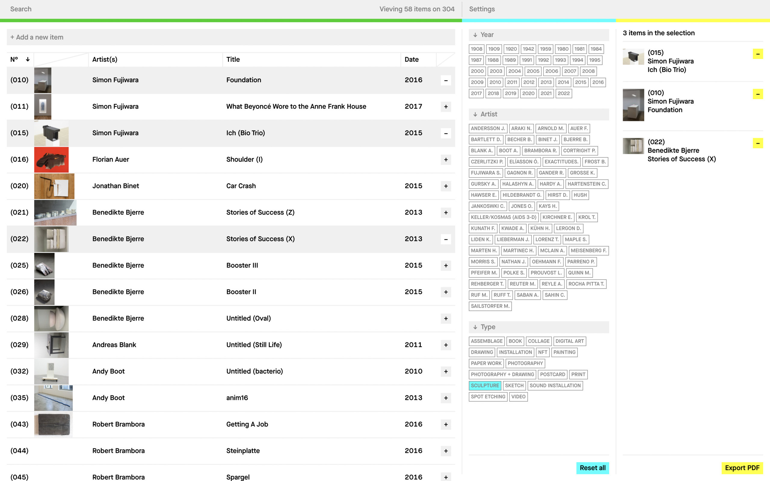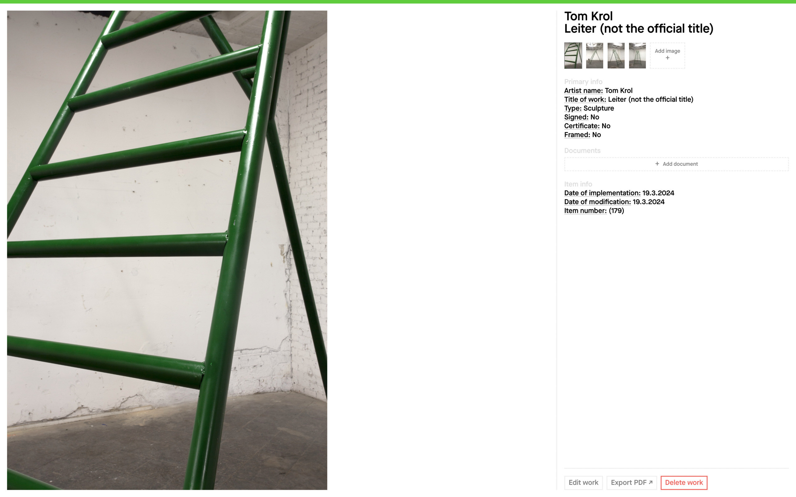 A collection management tool for in-office use by the art collector duo Friedrich and Johanna Grafling. Archive Graflings is an inventory system that allows them to organise, share, and keep track of their collection.